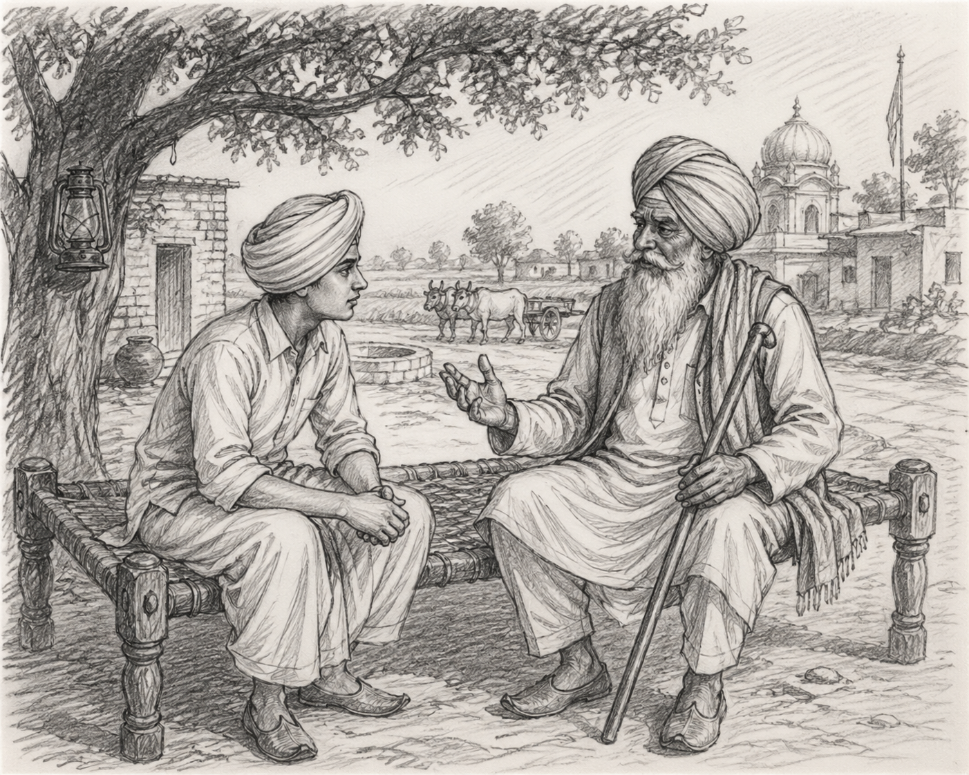 ਤਰਕਾਲੀਂ ਮੈਂ ਸੱਥ ਵਿਚ ਪੁੱਜਾ ਤਾਂ ਸਾਰੇ ਜਣੇ ਮੰਜੀਆਂ ਤੇ ਖੁੰਡਾਂ ਉਤੇ ਬੈਠੇ ਗੱਲਾਂ ਕਰ ਰਹੇ ਸਨ। ਸਣ ਵੱਟਦੇ, ਹੁੱਕਾ ਪੀਂਦੇ, ਉਹ ਉੱਚੀ-ਉੱਚੀ ਗੱਲਾਂ ਕਰਦੇ ਸਨ ਸਾਰੇ ਮੁਲਕ ਵਿਚ ਤਰਥੱਲੀ ਮੱਚੀ ਹੋਈ ਹੈ। ਜਰਮਨ ਰੂਸ ’ਤੇ ਹਮਲਾ ਕਰ ਕੇ ਹੁਣ ਕਾਬਲ ਕੰਧਾਰ ਤੀਕ ਆ ਗਿਆ ਹੈ ਏਧਰ ਜਪਾਨ ਸਿੰਘਾਪੁਰ ਤੇ ਬਰਮਾ ਲੰਘ ਕੇ ਕਲਕੱਤੇ ਤੀਕ ਪੁੱਜ ਗਿਆ ਹੈ…